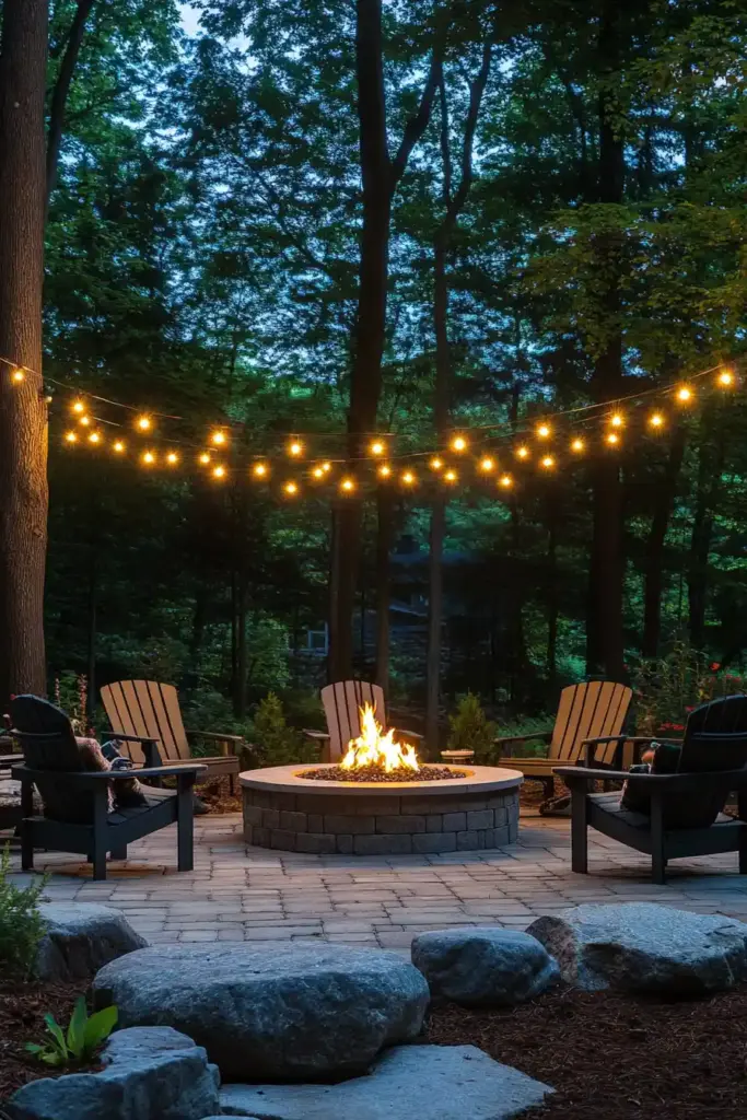 Add string lights overhead or lanterns along the edges for soft evening ambiance. The warm wood tones of the mulch tie in beautifully with rustic or modern outdoor decor.