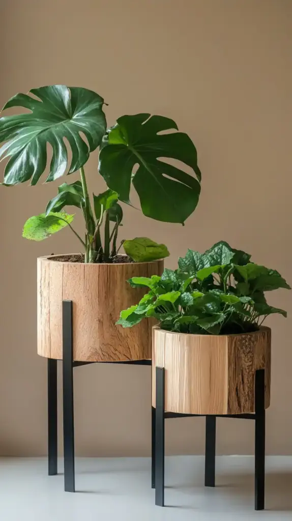 This bold structure is among the most inventive planting stand ideas for narrow walls, entryways, or unused nooks. Its symmetry adds visual rhythm, and its structure invites creativity.
